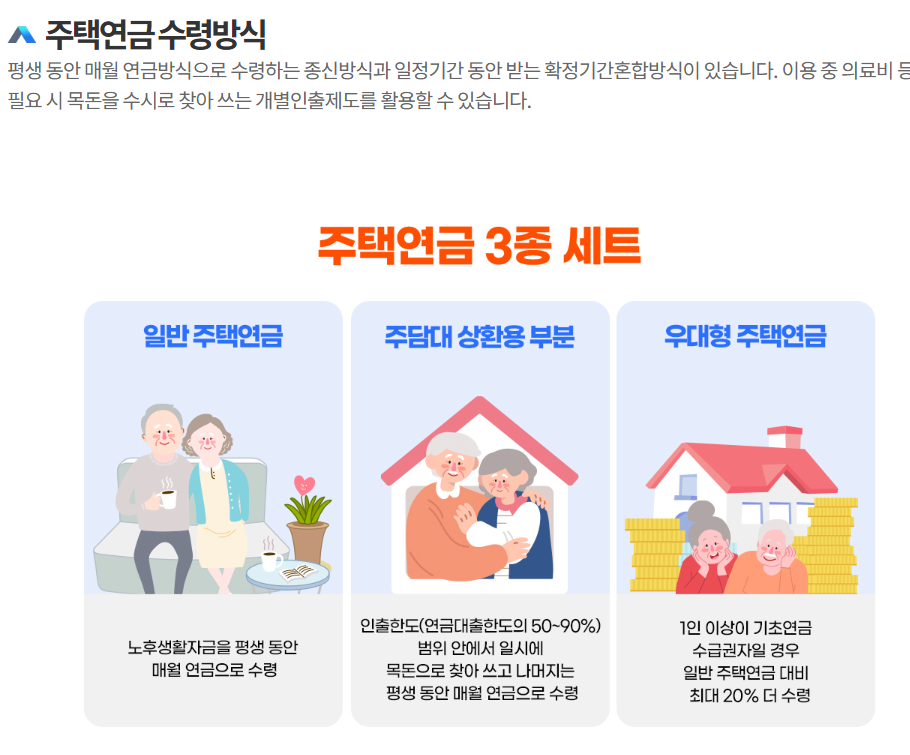 - 우대지급 방식: 기초생활수급자 또는 소득이 적은 노인 등을 대상으로 하여, 일반 종신지급 방식에 비해 조금 더 높은 금액을 수령할 수 있는 우대 방식입니다.