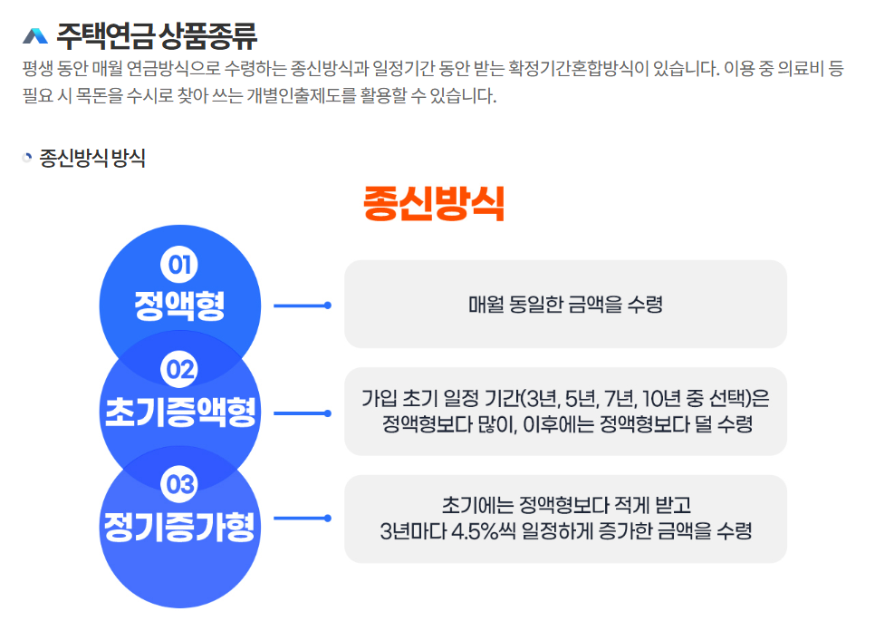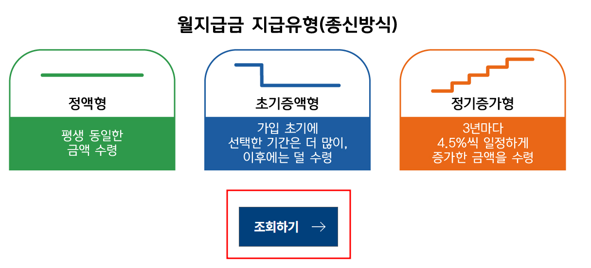 - 종신지급 방식: 사망할 때까지 매월 일정 금액을 수령할 수 있는 방식입니다. 안정적인 연금 생활을 원한다면 종신지급 방식을 추천합니다.