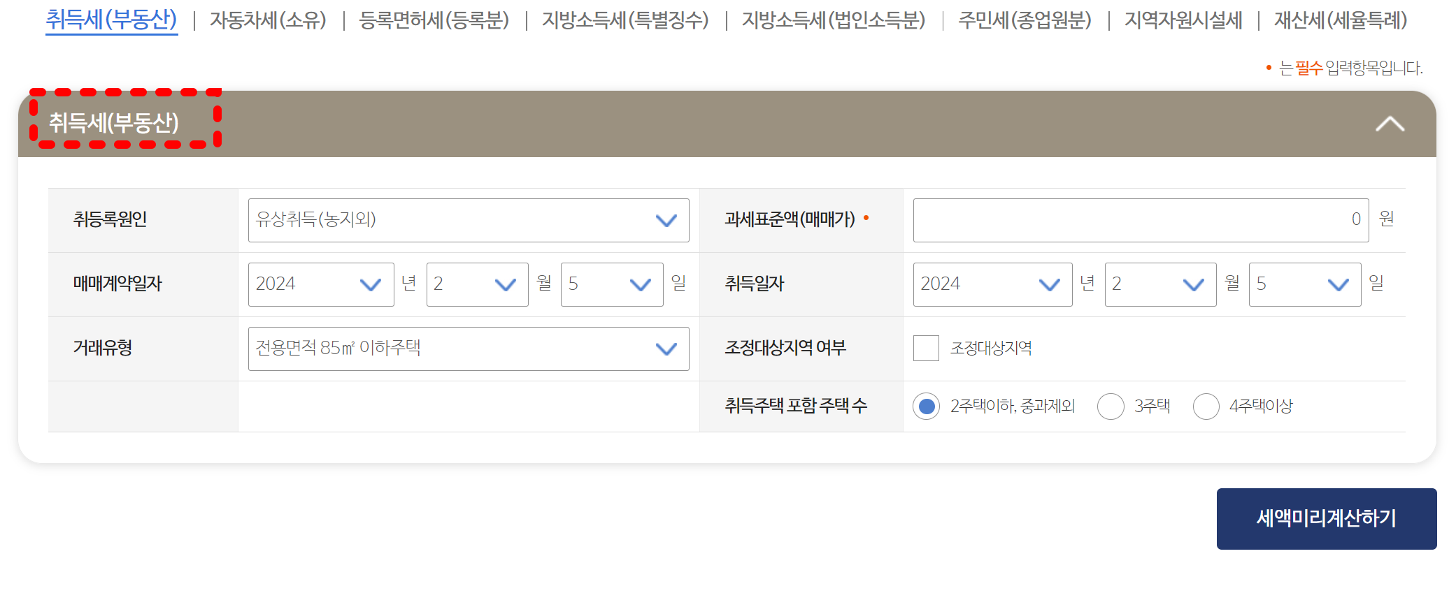 아파트 취득세 등록세 계산기를 통해 매매한 아파트의 위치, 보유 주택 수, 취득일 등 다양한 조건을 입력하여 세액을 미리 계산할 수 있습니다.