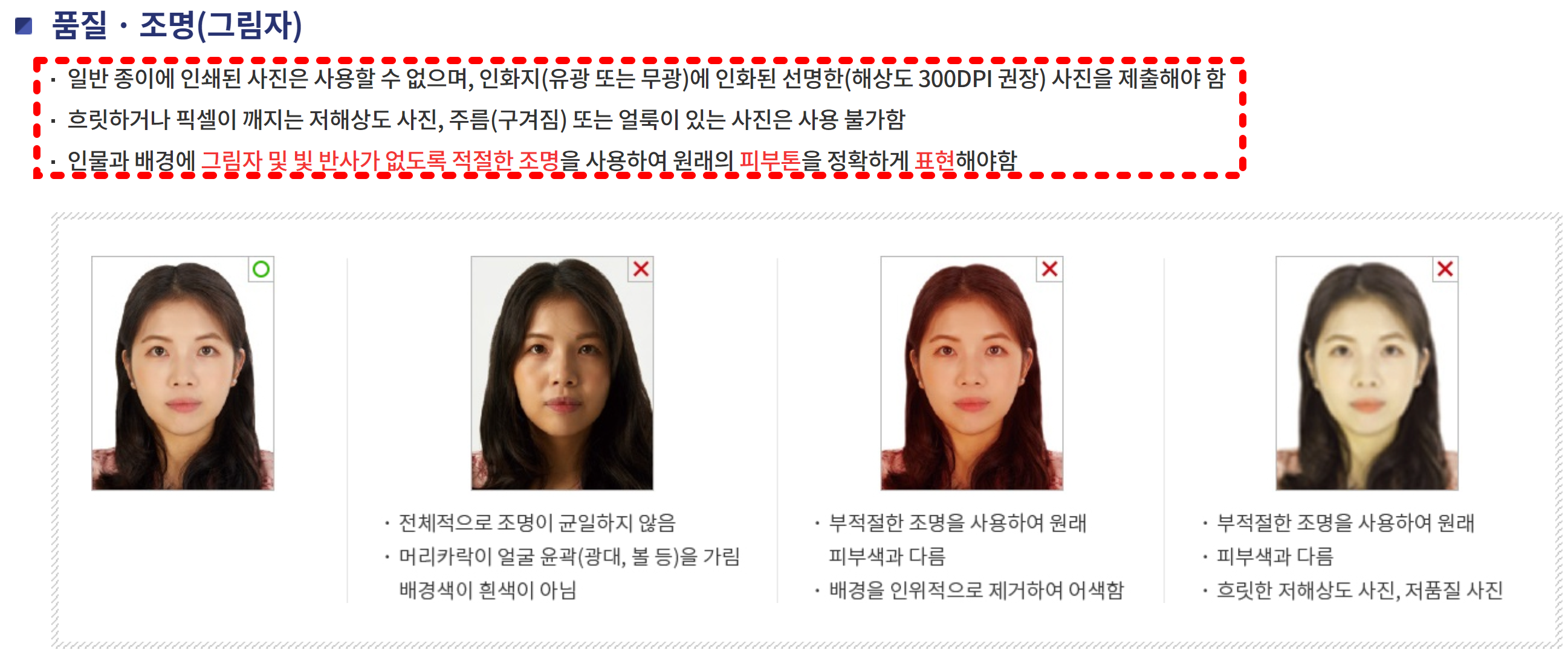 - 본인이 직접 촬영한 사진은 여권사진 규격에 적합한 경우에만 사용 가능
