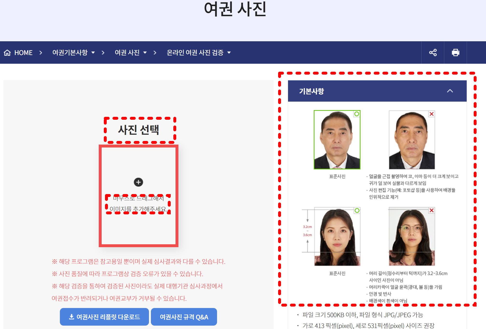 여권사진도 재발급 시 규격이 맞으면 집에서도 촬영할 수 있습니다. 하지만 이 사진이 여권사진 규격에 맞는지 검증해 보는것도 필요합니다. 아래 여권사진 검증서비스를 이용해 보세요.