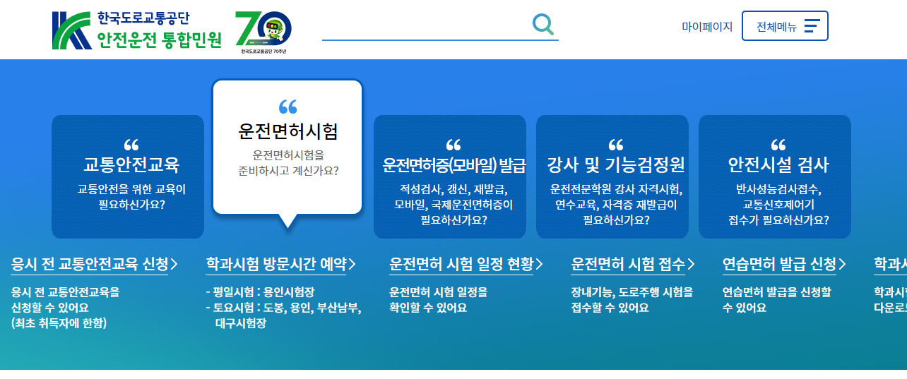 - 운전면허 시험장: 신청 당일 바로 적성검사를 받을 수 있어 가장 빠릅니다.