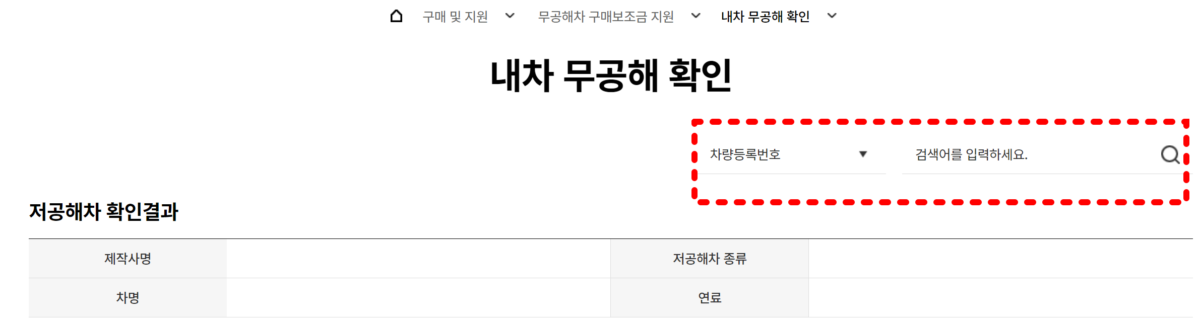 조회하기를 통해 사이트로 이동 후 차량등록번호를 넣고 조회 해 보세요.