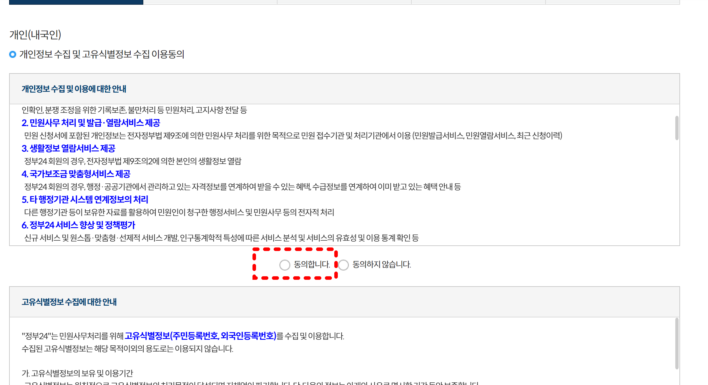 보통 비회원 신청하기를 클릭하면 아래처럼 나오는 각종 동의하기에 동의하기를 클릭합니다.