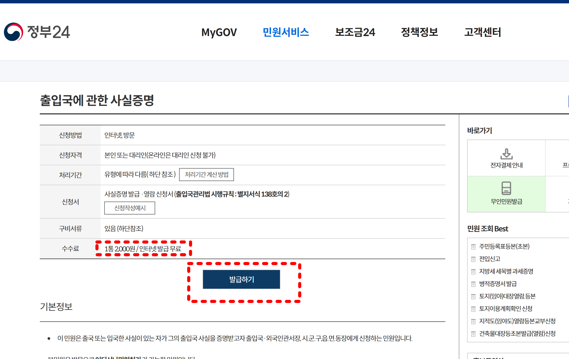 보통 인터넷으로 출입국사실증명서를 발급하면 무료입니다. 방문해서 직접 발급받을 시에는 2,000원이라는 수수료를 내고 발급을 받아야 하지만, 인터넷은 무료이니 차근차근 따라해 보세요.