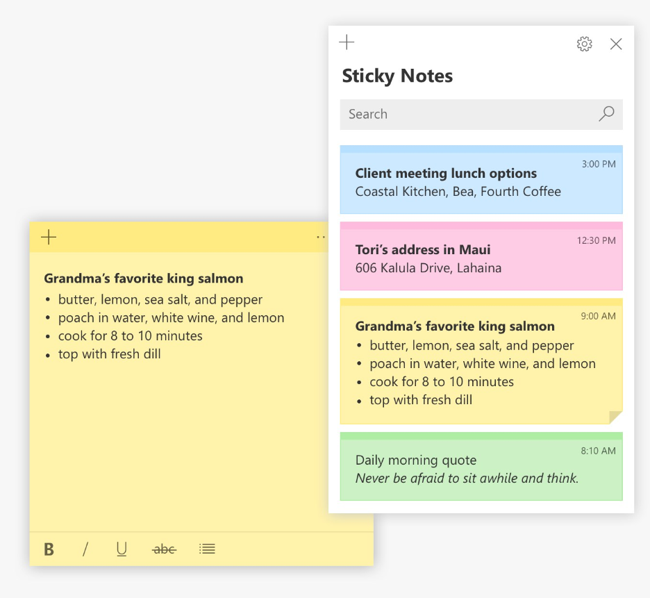 다양한 색상의 포스트잇을 컴퓨터 바탕화면에서 쓸 수 있습니다.