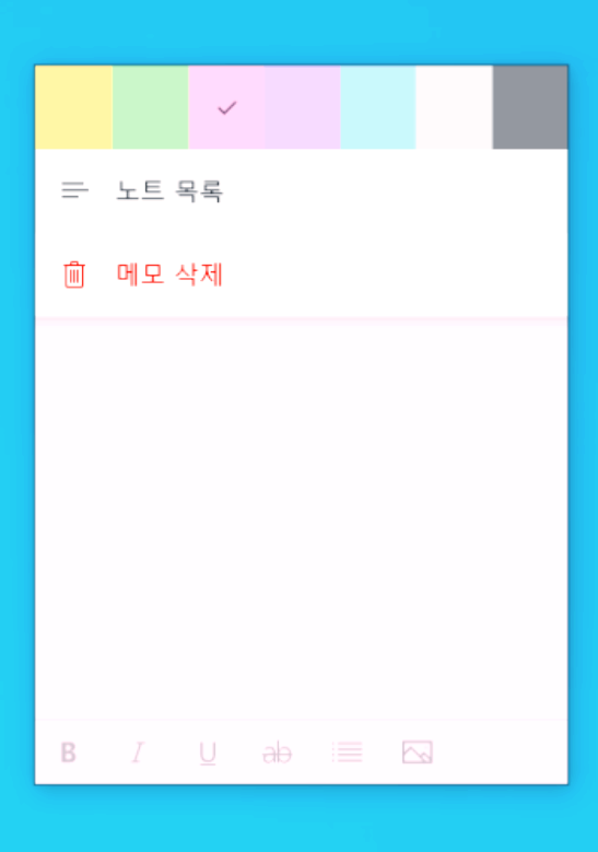 - 노트 관리: 메모장 상단의 +버튼을 클릭하여 새로운 노트를 추가할 수 있습니다. 노트의 색상을 변경하거나 삭제할 수도 있습니다.