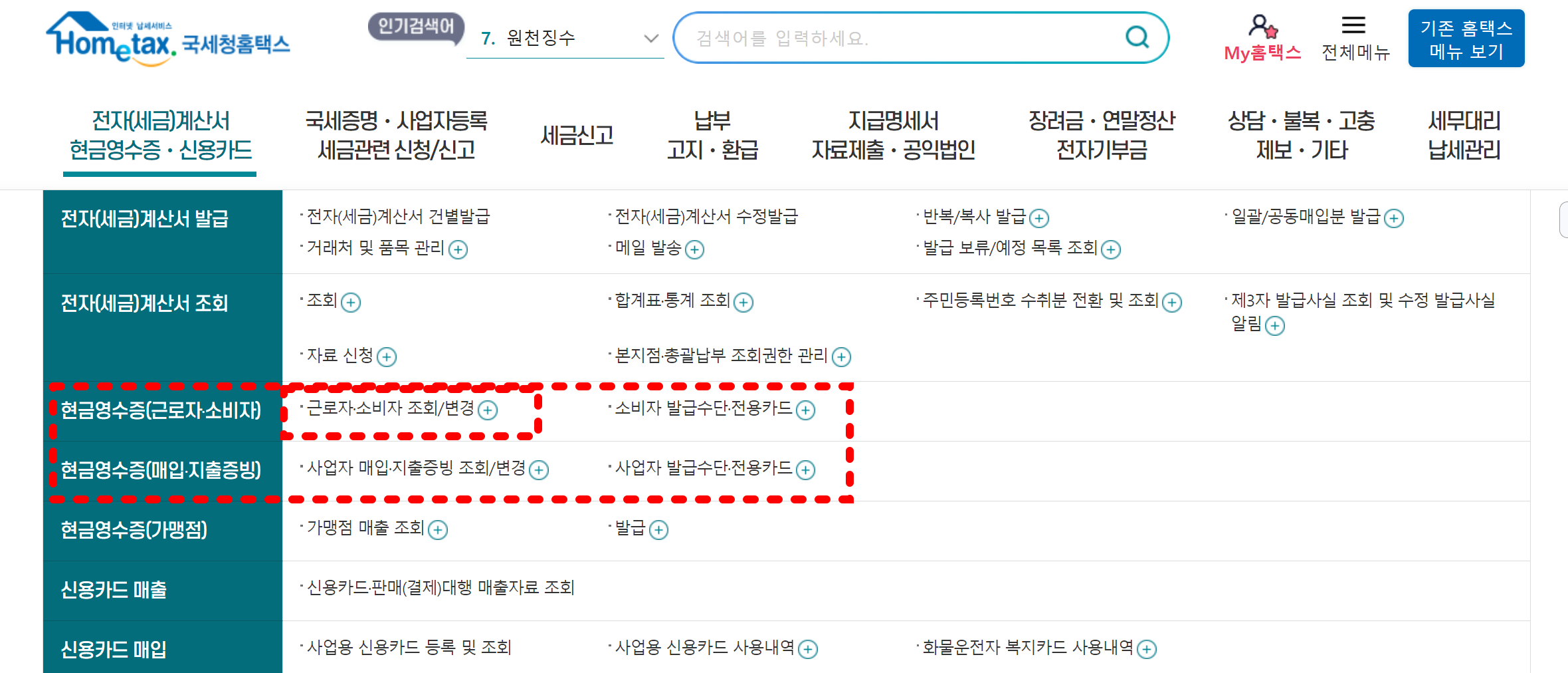 현금영수증 조회 홈택스 안내