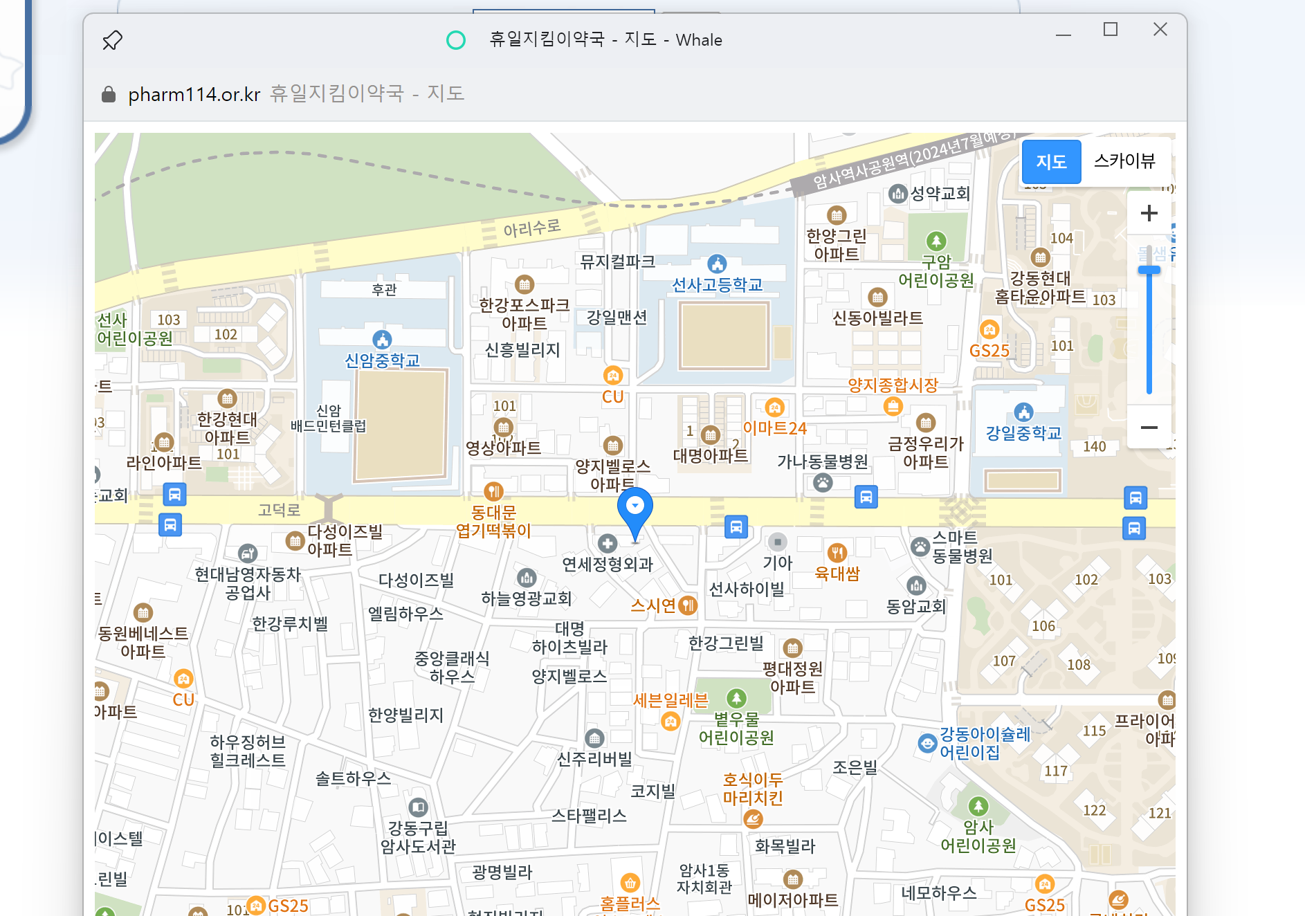 지도보기를 클릭하면, 지도도 상세히 볼 수 있습니다. 급할때 미리 위치를 파악하고 가면 쉽겠죠?