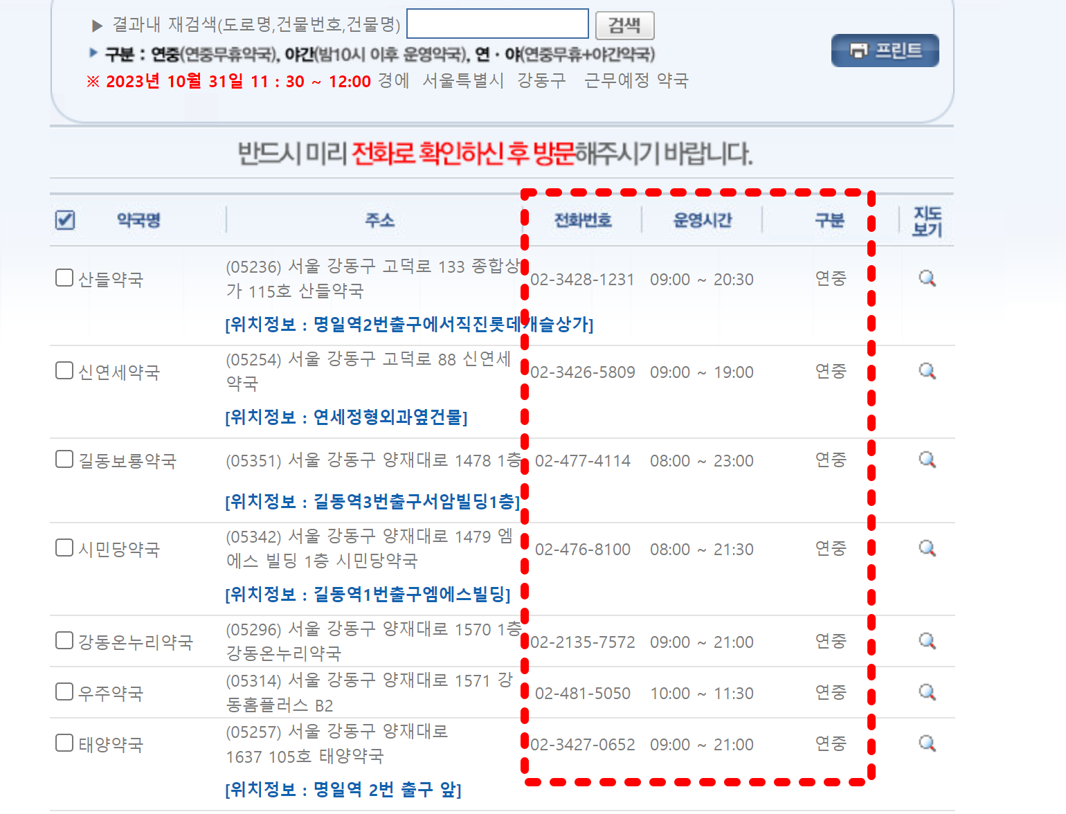 업데이트가 안된 정보일 수 있고,그날의 약국 상황에 따라 달라질 수 있으니, 꼭 전화번호를 통해 운영 사실을 확인 한 후 방문하세요