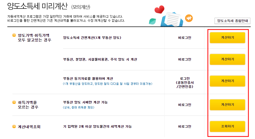 양도소득세 계산 사이트