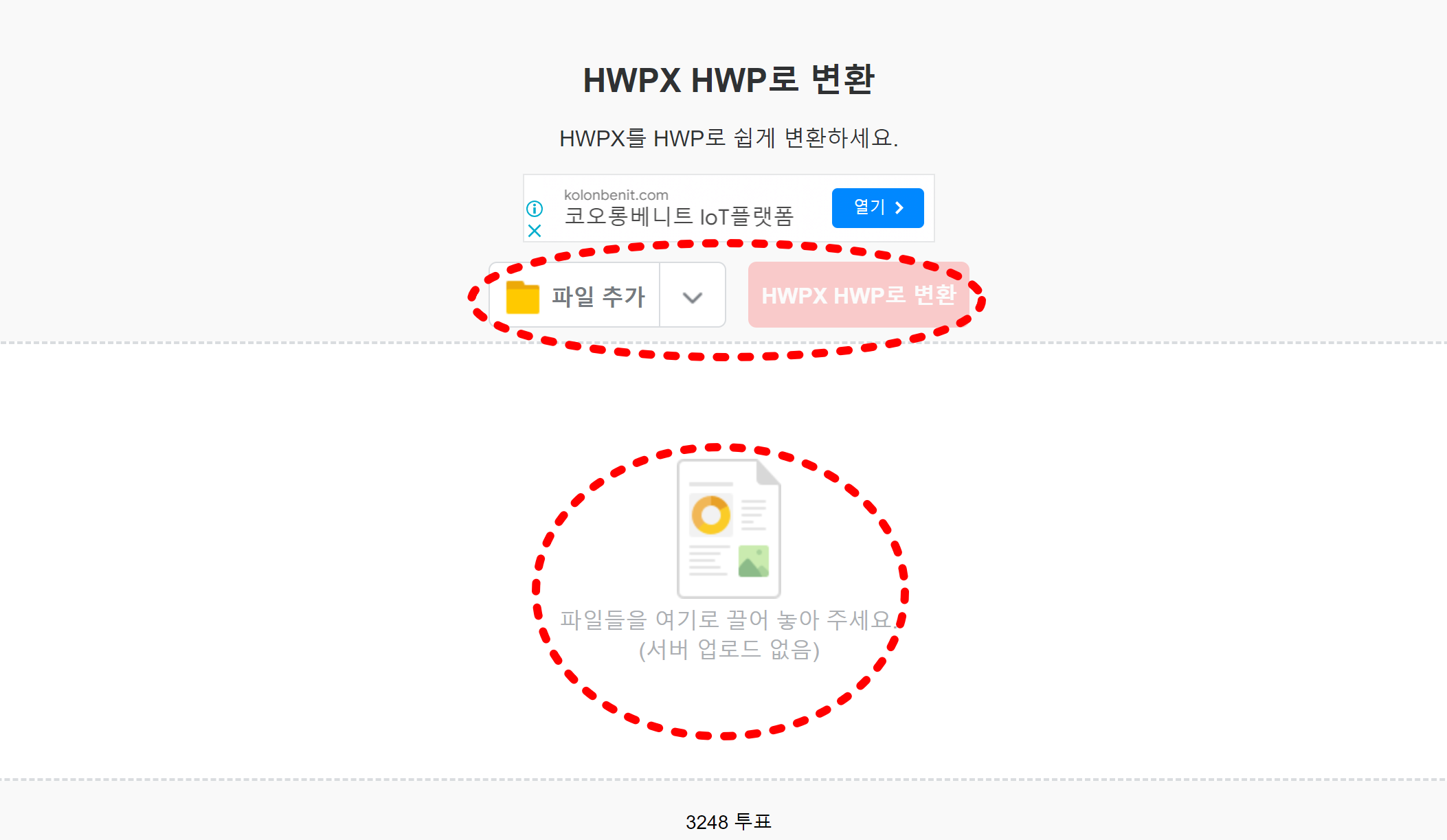 파일추가를 사용하지 않고 드래그로 파일을 아래 '파일들을 여기로 끌어놓아 주세요' 부분에 이동시켜도 변환이 가능합니다.