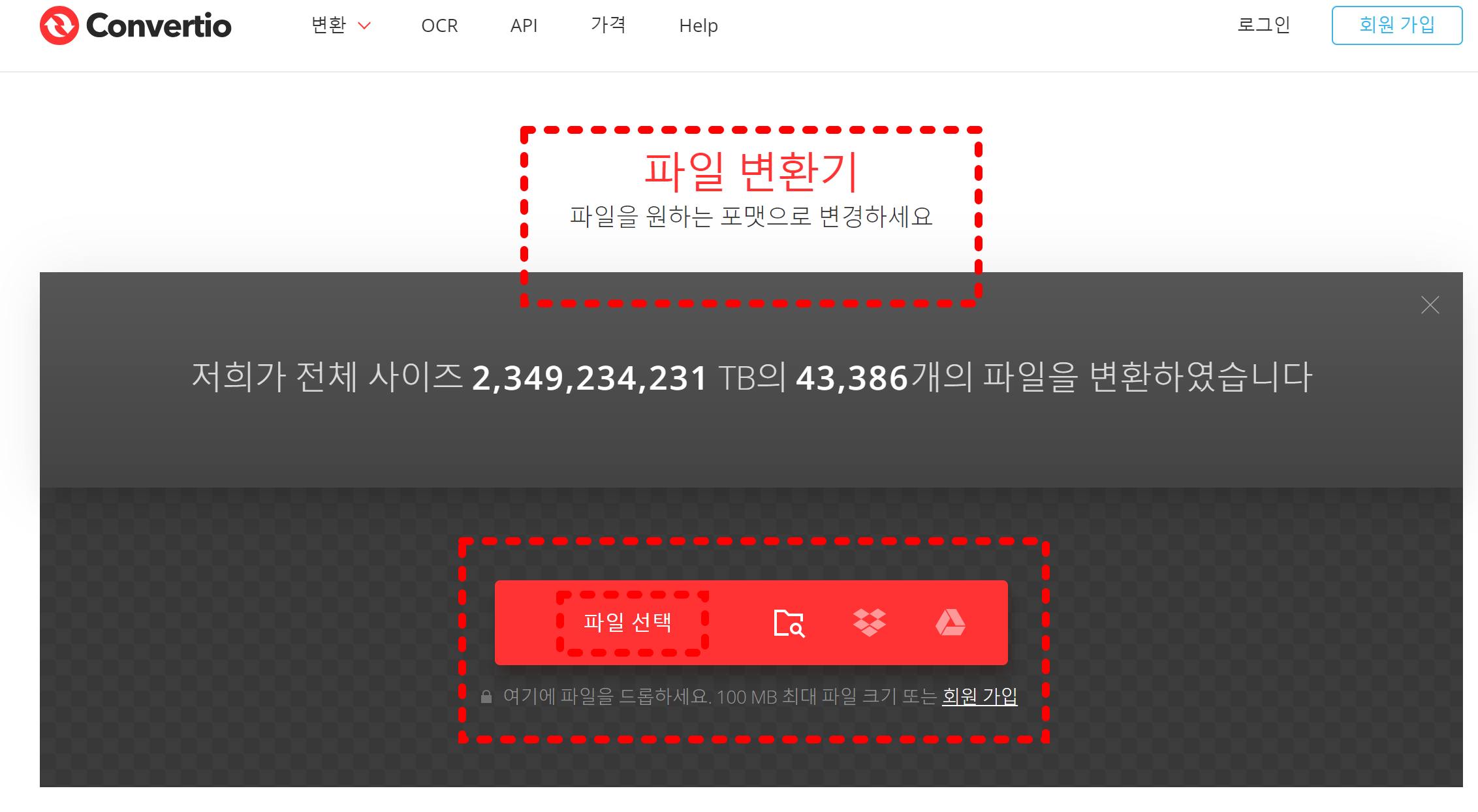 사이트 접속 시 아래와 같은 화면을 볼 수 있습니다. 여기서 쉽게 파일선택을 클릭하여 파일을 첨부합니다.